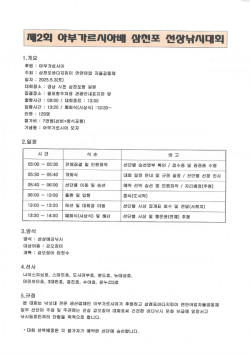 제2회 아부가르시아배 낚시대회2025년 5월3일 토요일 대상어종 : 갑오징어계측 : 마릿수 (동일시 무게)시상: 1등~4등까지행운상까지 푸짐 합니다 참가자 전원 사은품 지급선비는 7만원 식사 ㆍ음료ㆍ간식 제공@대회 개요 보시면 자세히 알수 있습니다 @예약은 선상24 또는 유선으로 하시면 됩니다 감사합니다*** 삼천포 나이스피싱호 예약 안내 ***예약문의 : 010-4933-4119오시는길 : 경남 사천시 팔포3길 56-45홈페이지 : https://nicefishing.sunsang24.com/